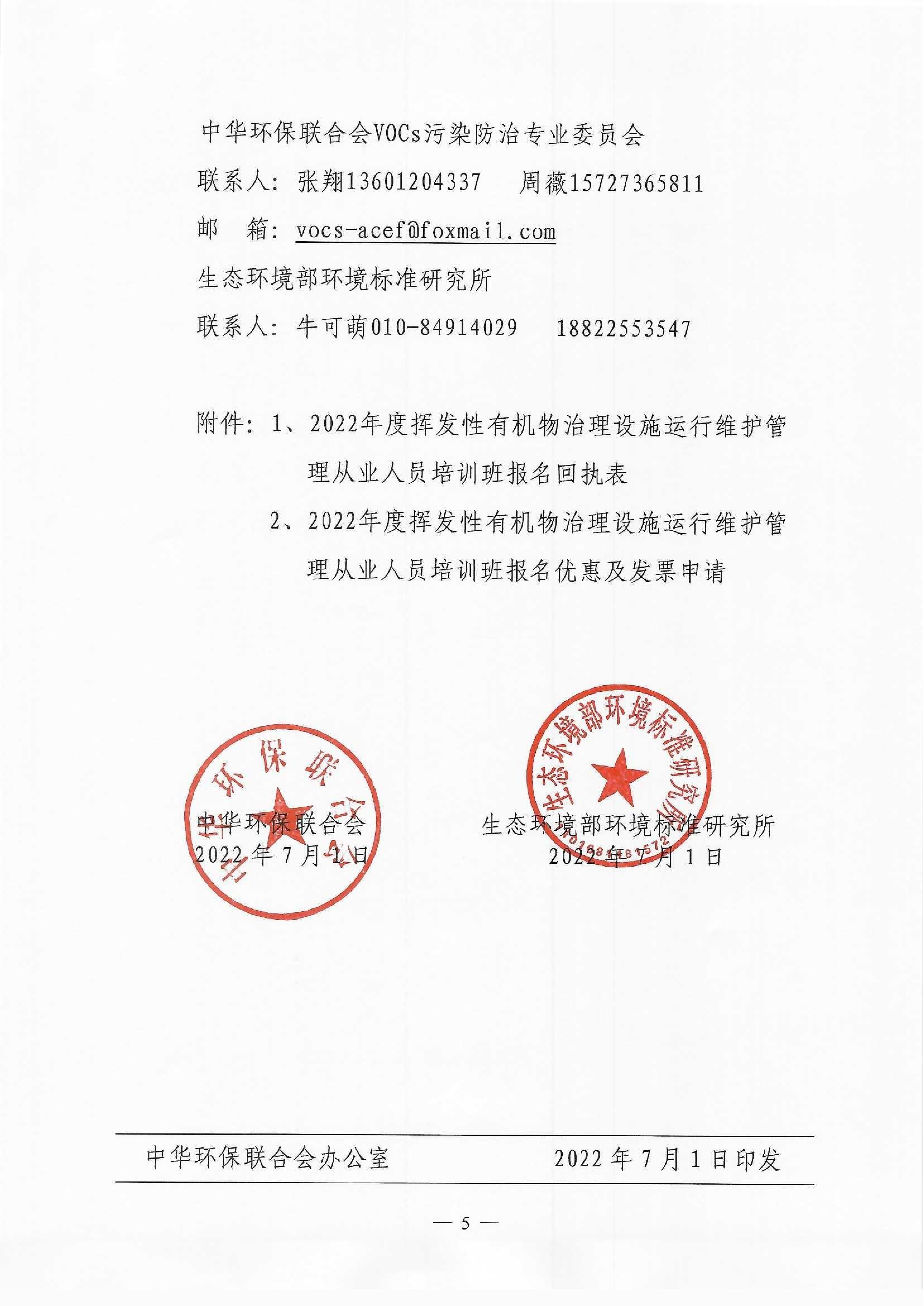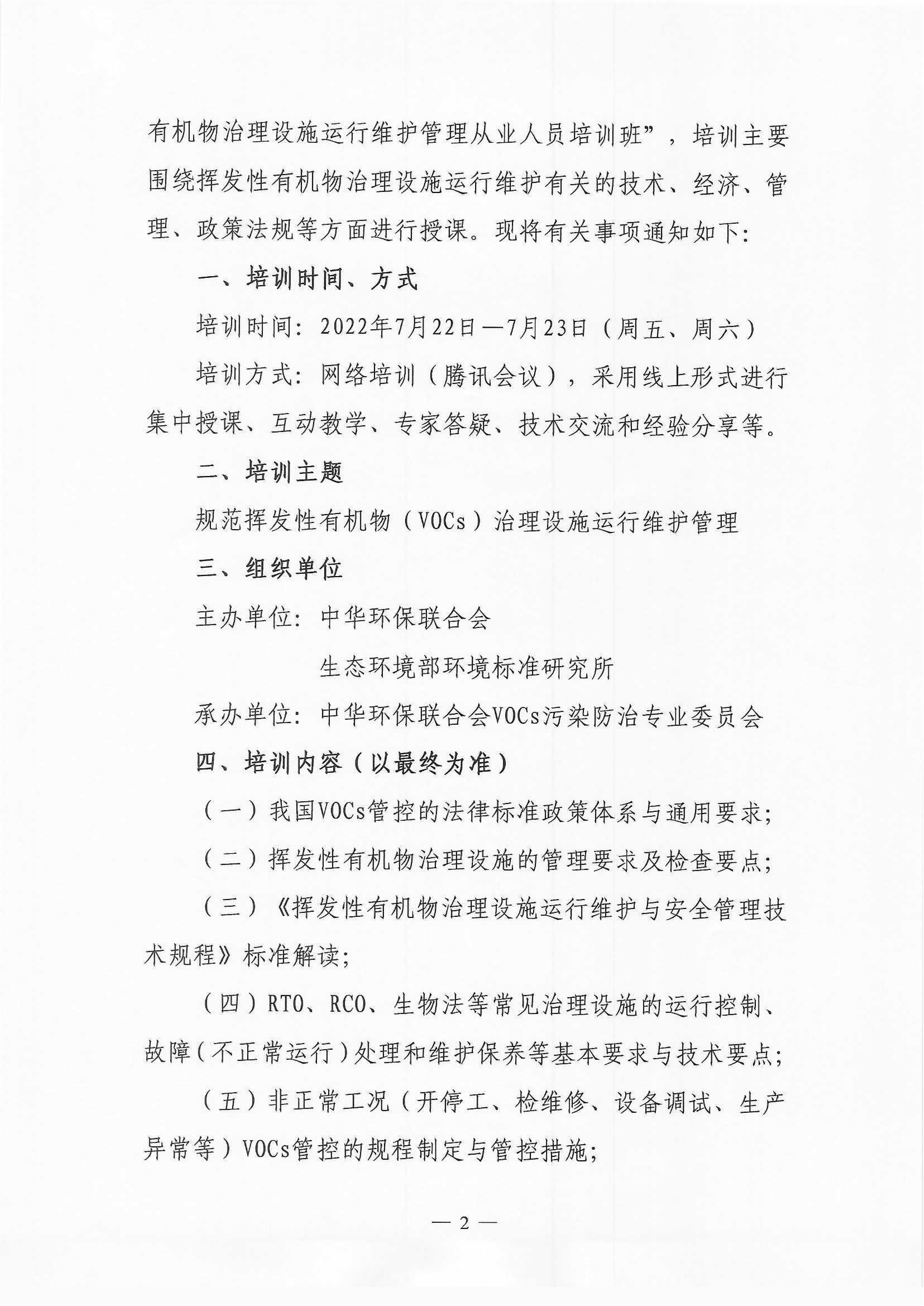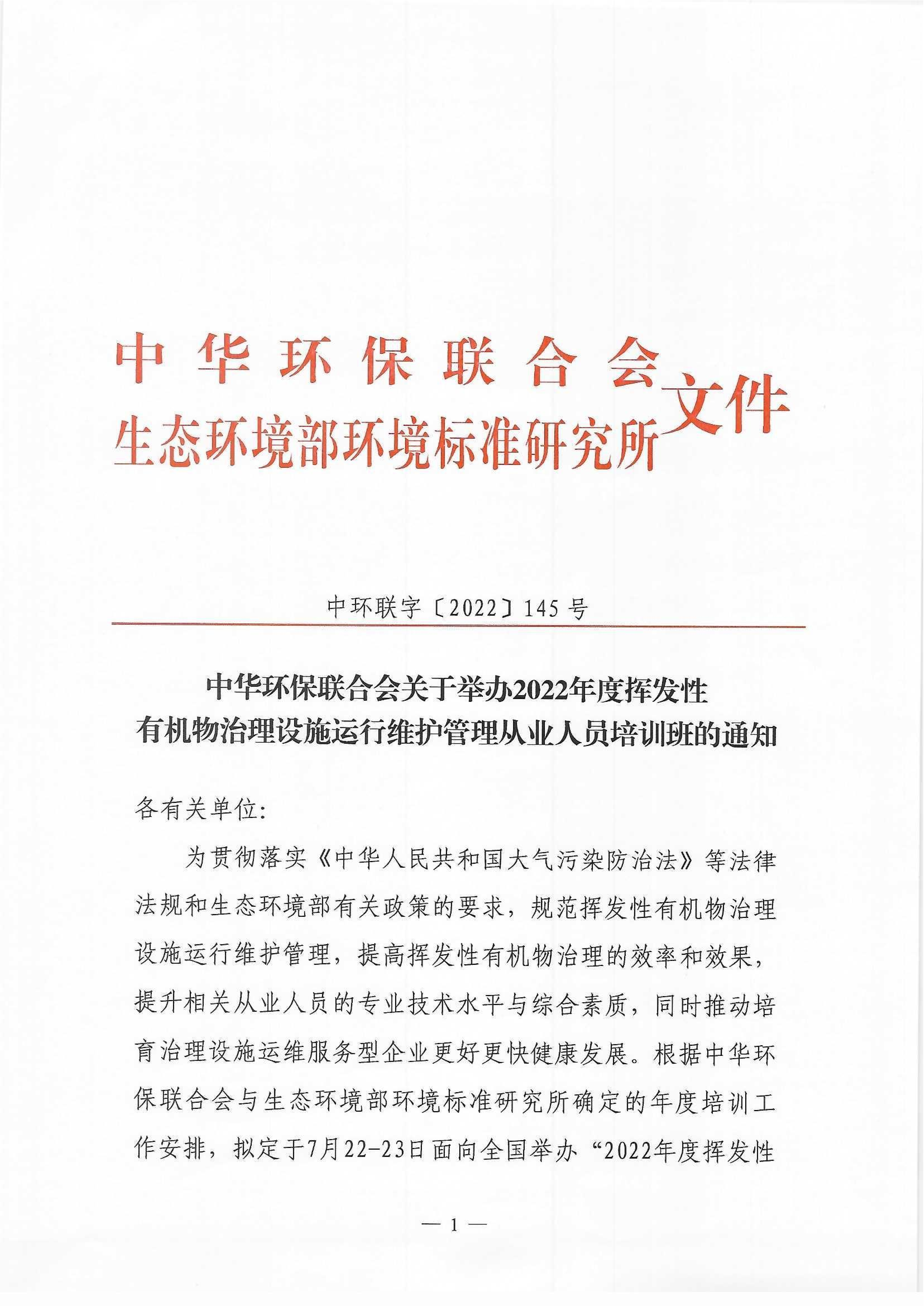 關(guān)于舉辦2022年度揮發(fā)性有機物治理設施運行維護管理從業(yè)人員培訓班的通知